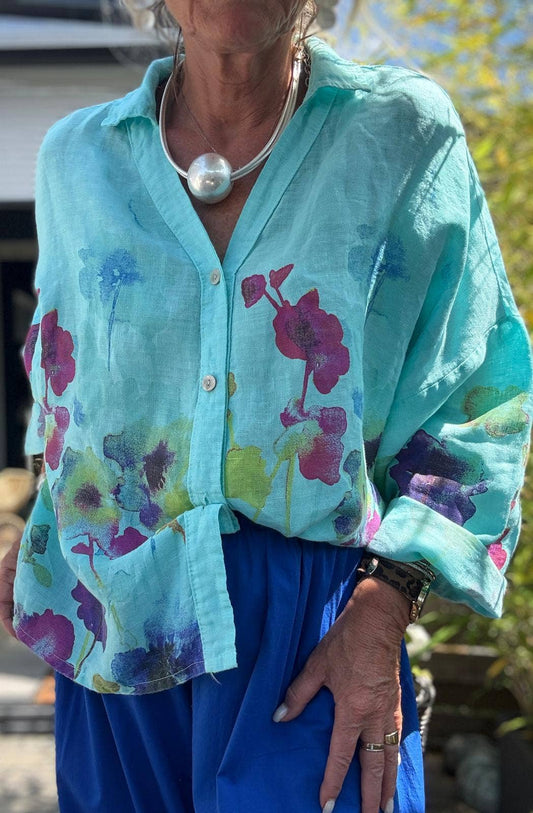 LINEN SHIRT FLOWER 48902 ๐น ๐ธ: Dark Blue