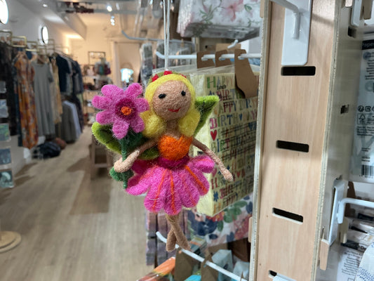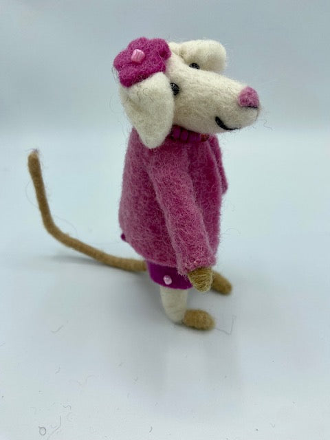 Pink cat glam mermaid with rainbow tail, hand felted wool 248
