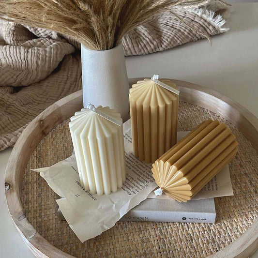 Small Ribbed Pillar Soy Candle | Handmade | Minimalist Decor