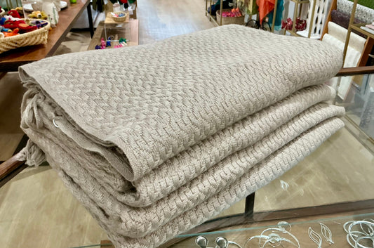 Cashmere Throw Blanket - Taupe and Black Loose Weave