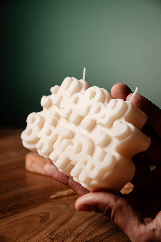 Large Ribbed Pillar Soy Candle | Handmade | Aesthetic Decor: Ivory
