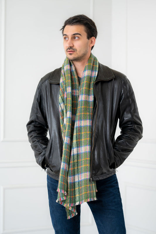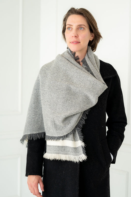 Thick and Plush Pure Cashmere Silver - Grey Tartan Scarf