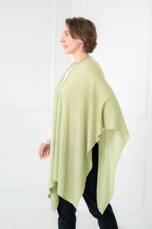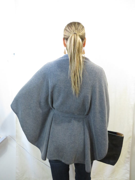 Pure Cashmere Belted Light Grey Poncho - Wrap
