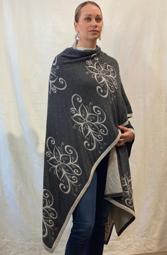 Pure Cashmere Belted Dark Grey Poncho - Wrap