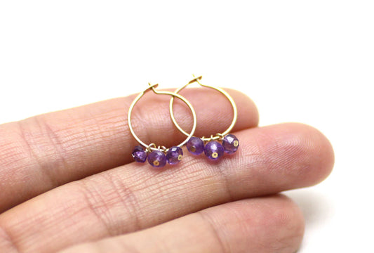 Gold Hoop Small Earrings with Gems $60
