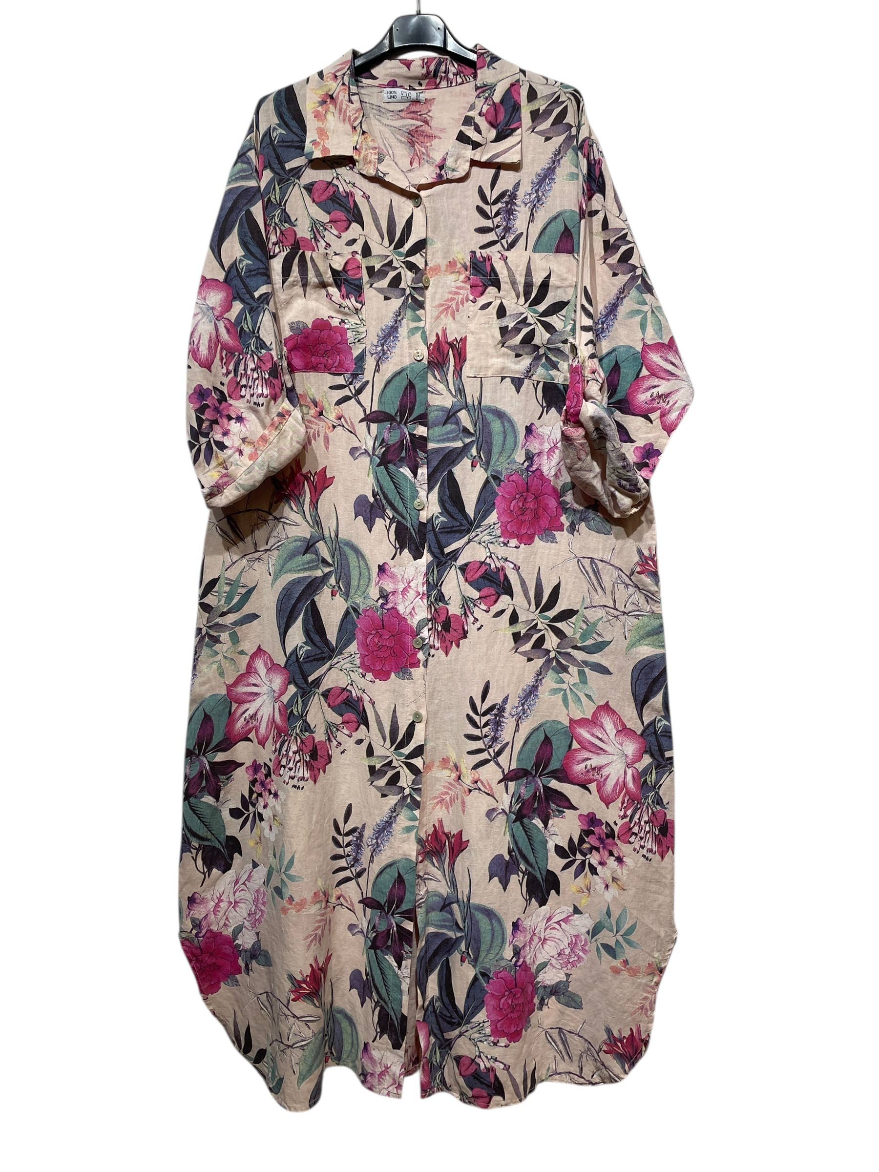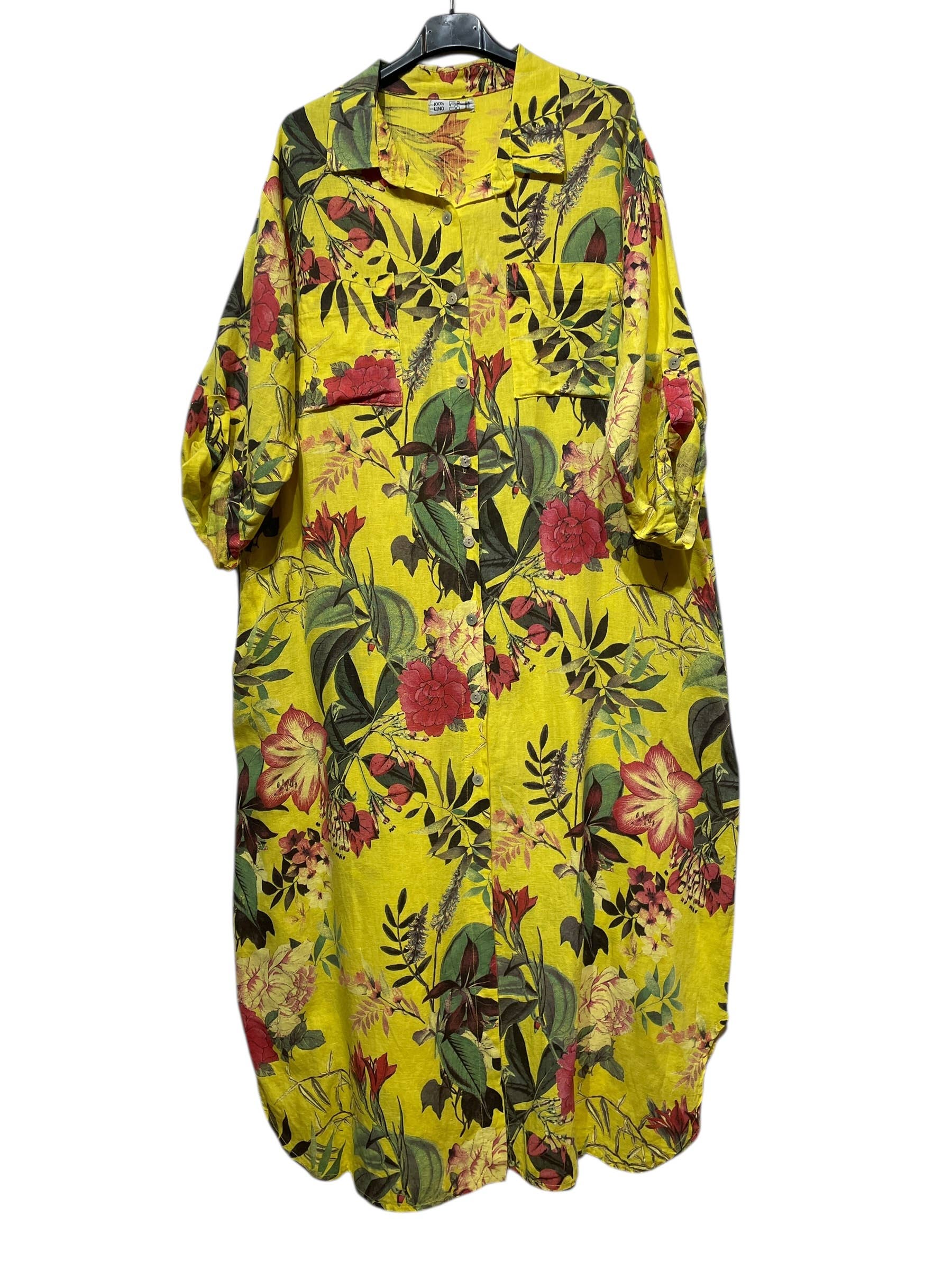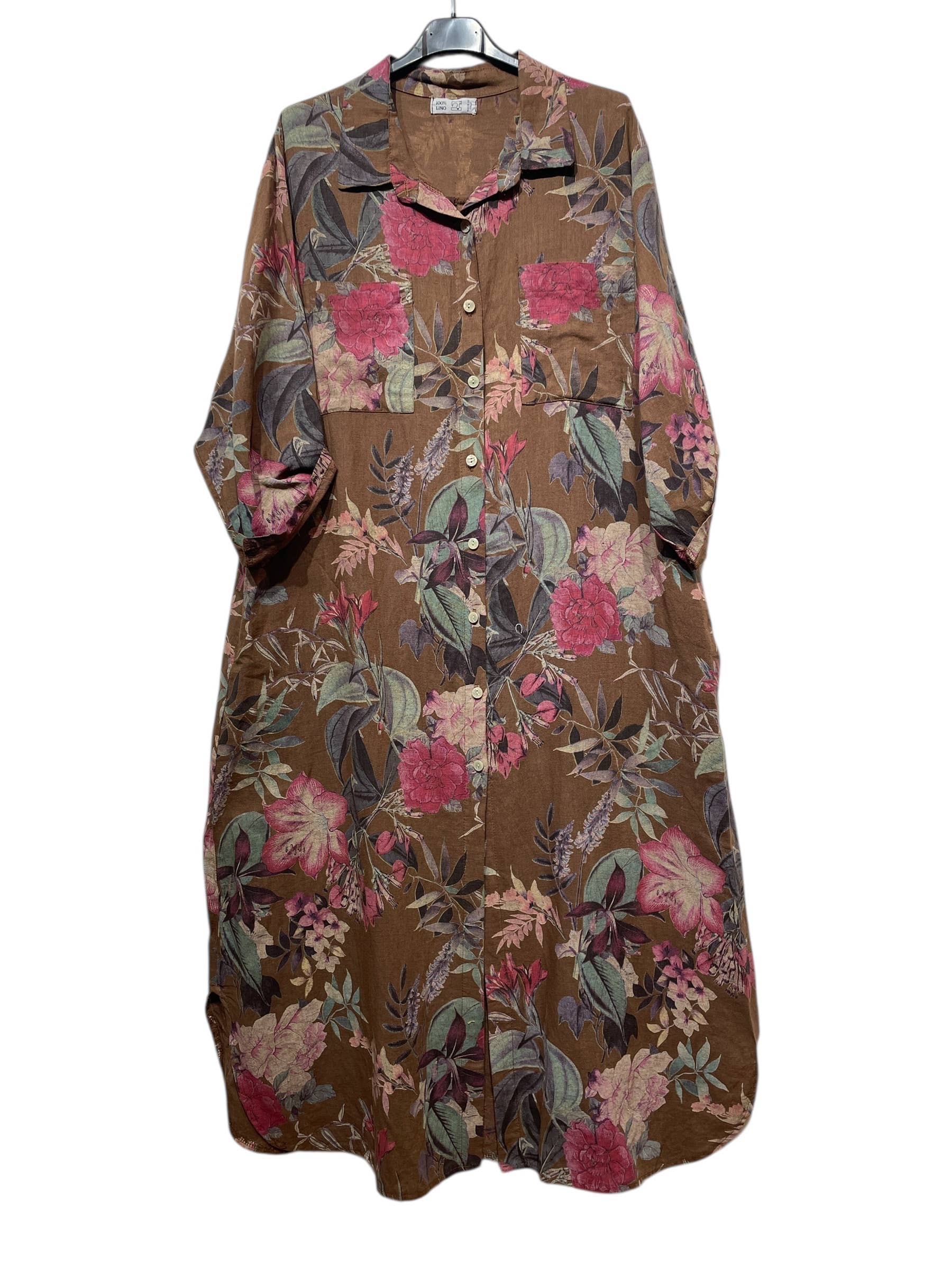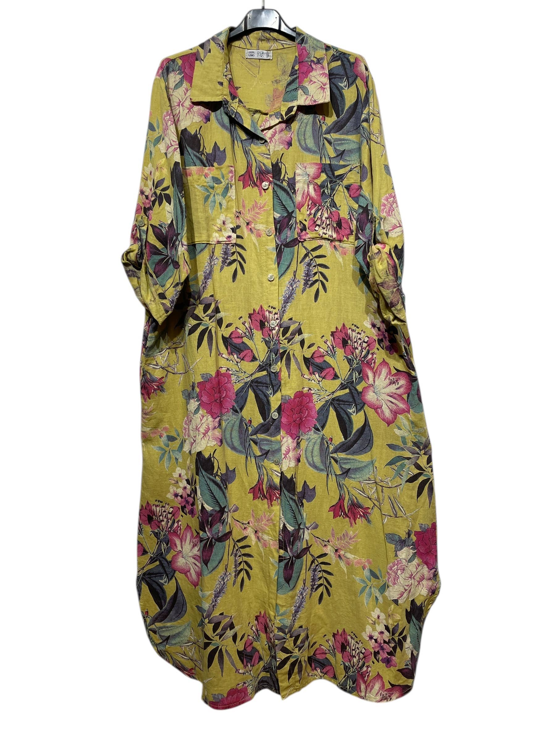 05262 LONG LINEN SHIRT, FRONT AND SIDE POCKETS: ANISE