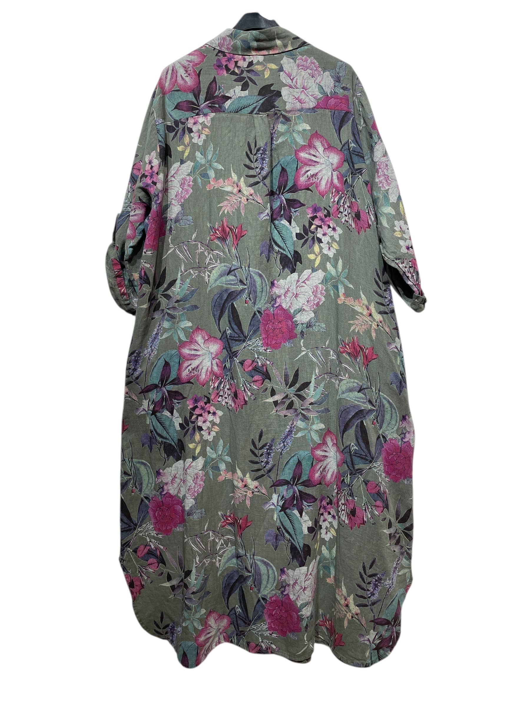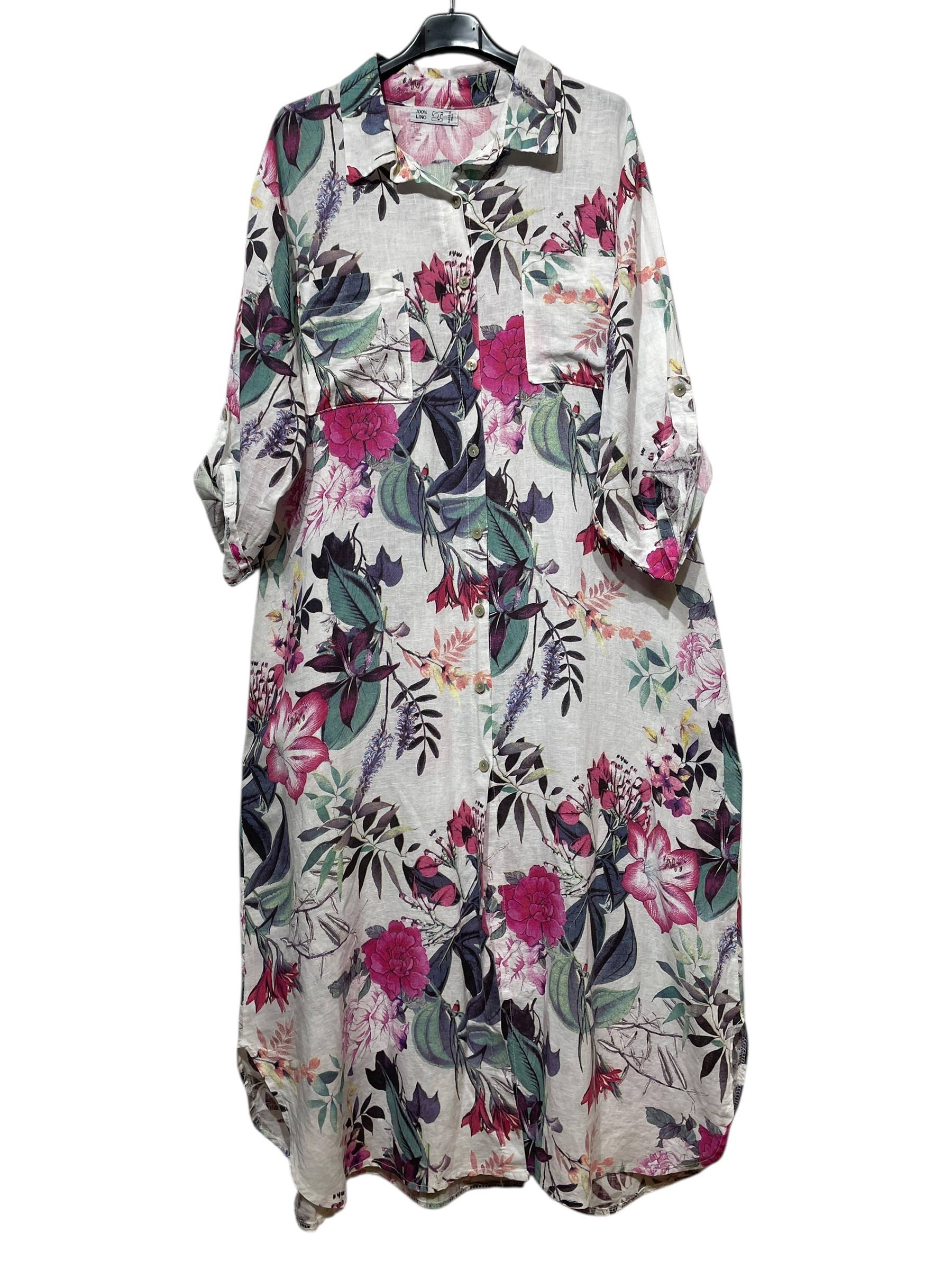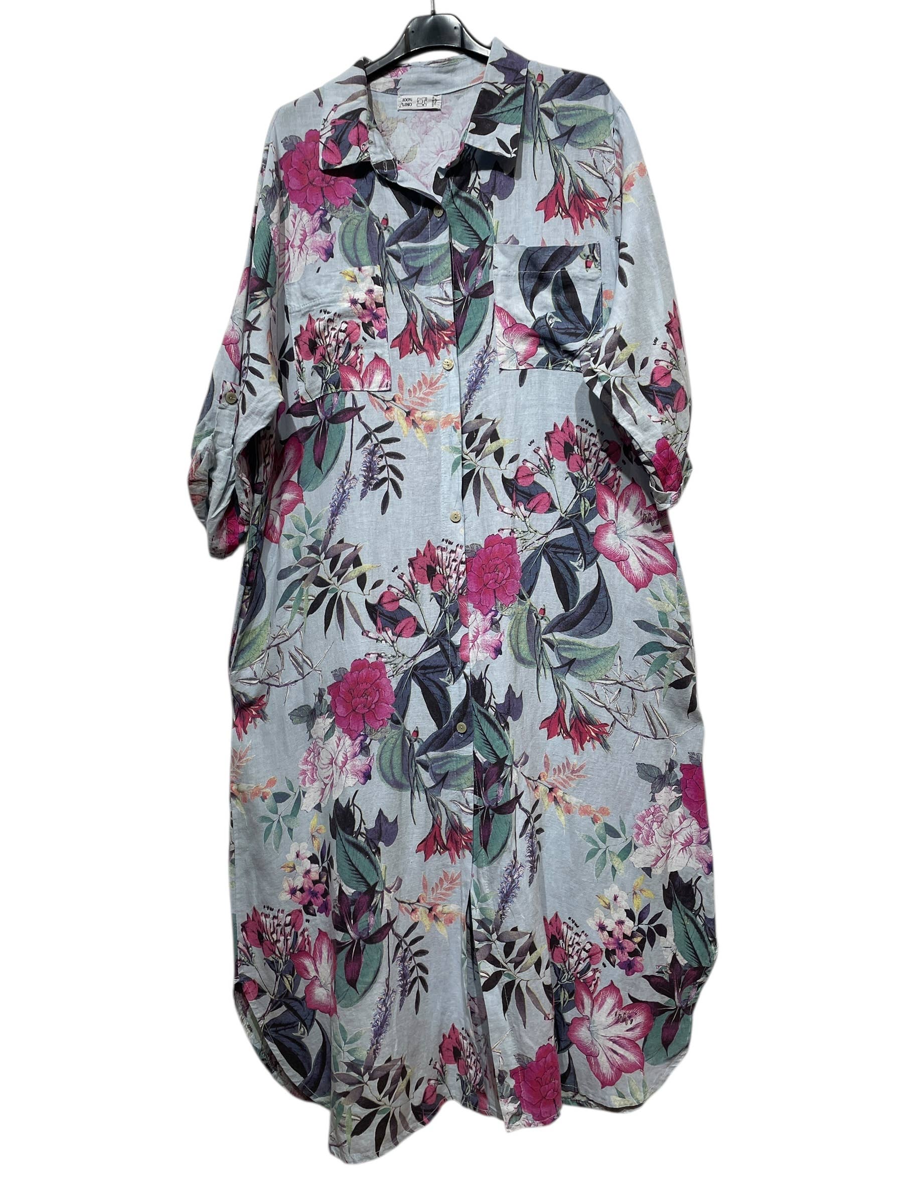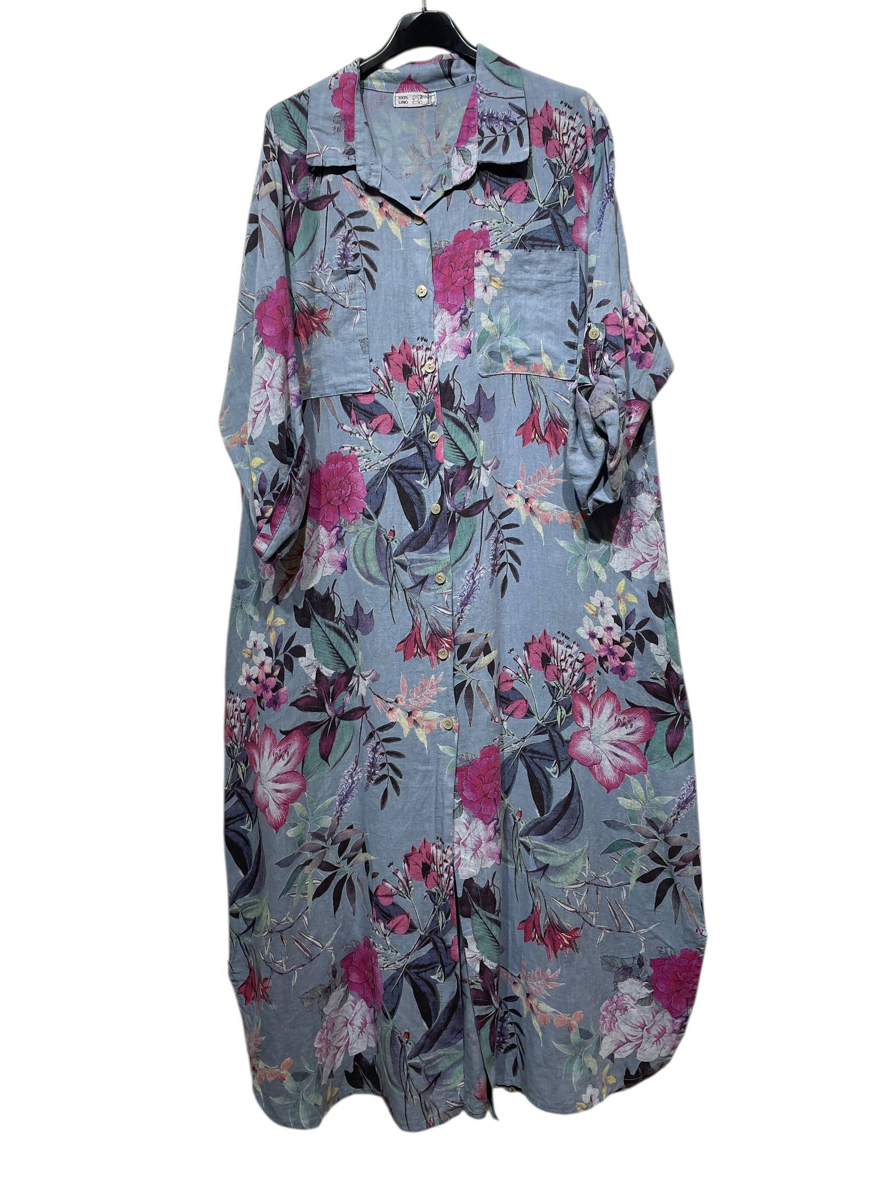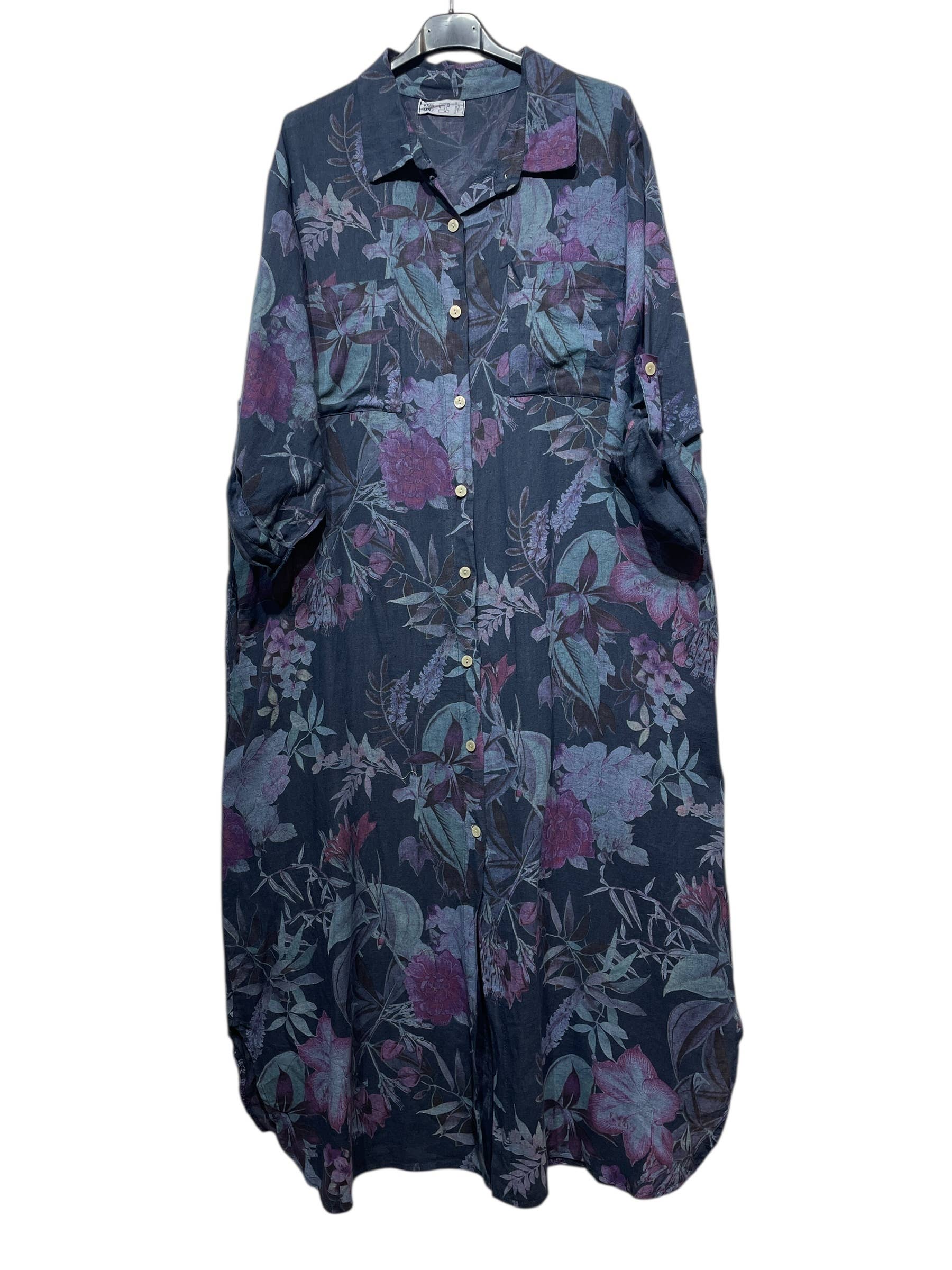 05262 LONG LINEN SHIRT, FRONT AND SIDE POCKETS: CHOCO