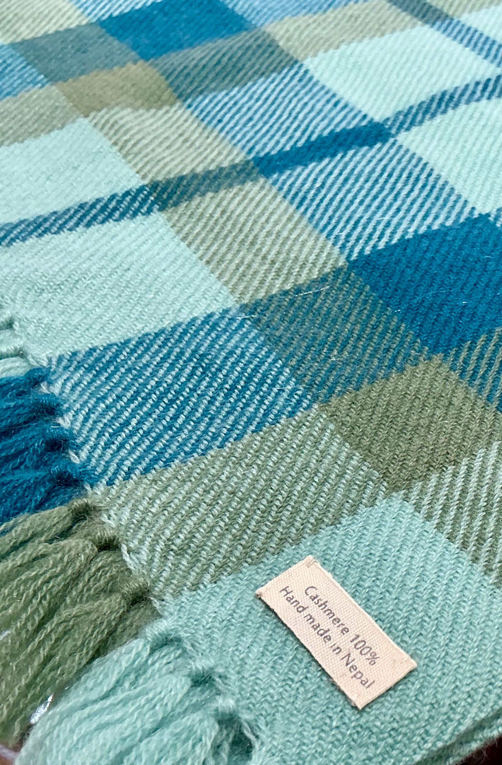 This beautiful unisex cashmere textile is hand woven and showcases the exceptional quality of Nepalese weavers. This scarf was woven by a socially ethical weaving collective in Kathmandu Nepal where the owner treats his staff like extended family.