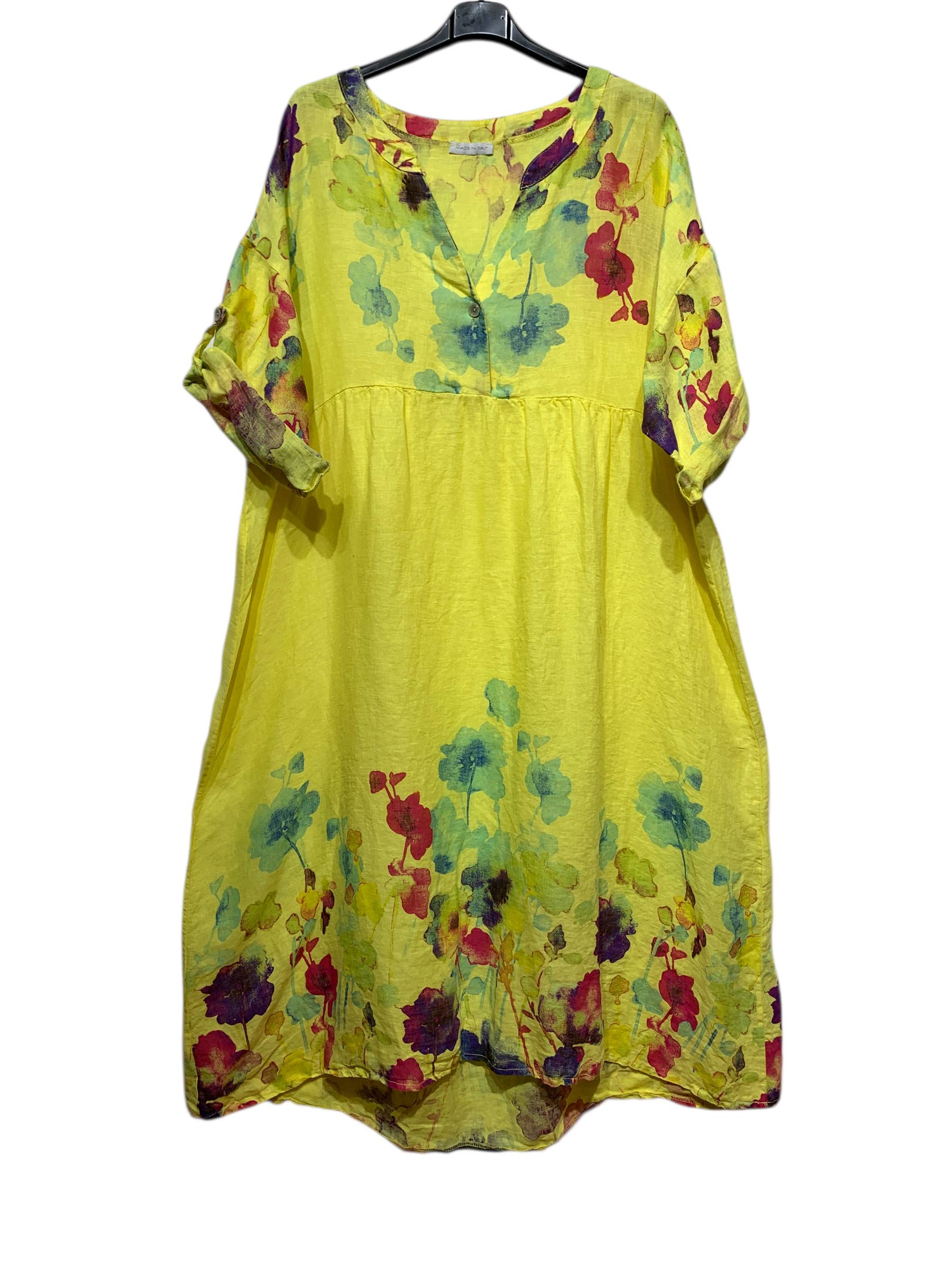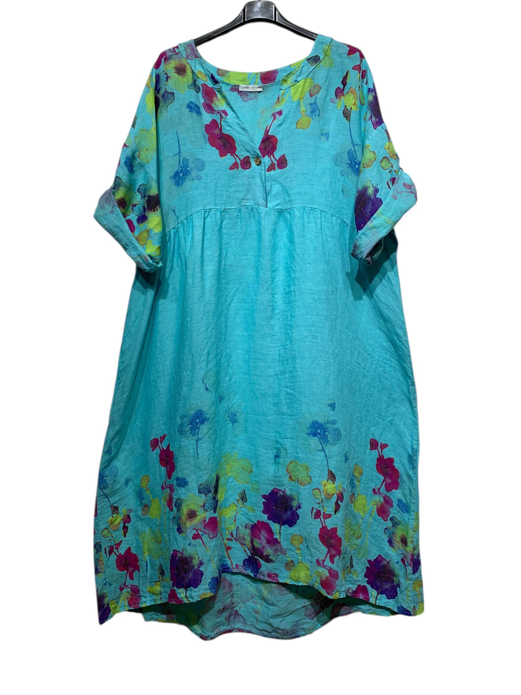 LINEN DRESS 1071 FLORAL PATTERN: CORAL