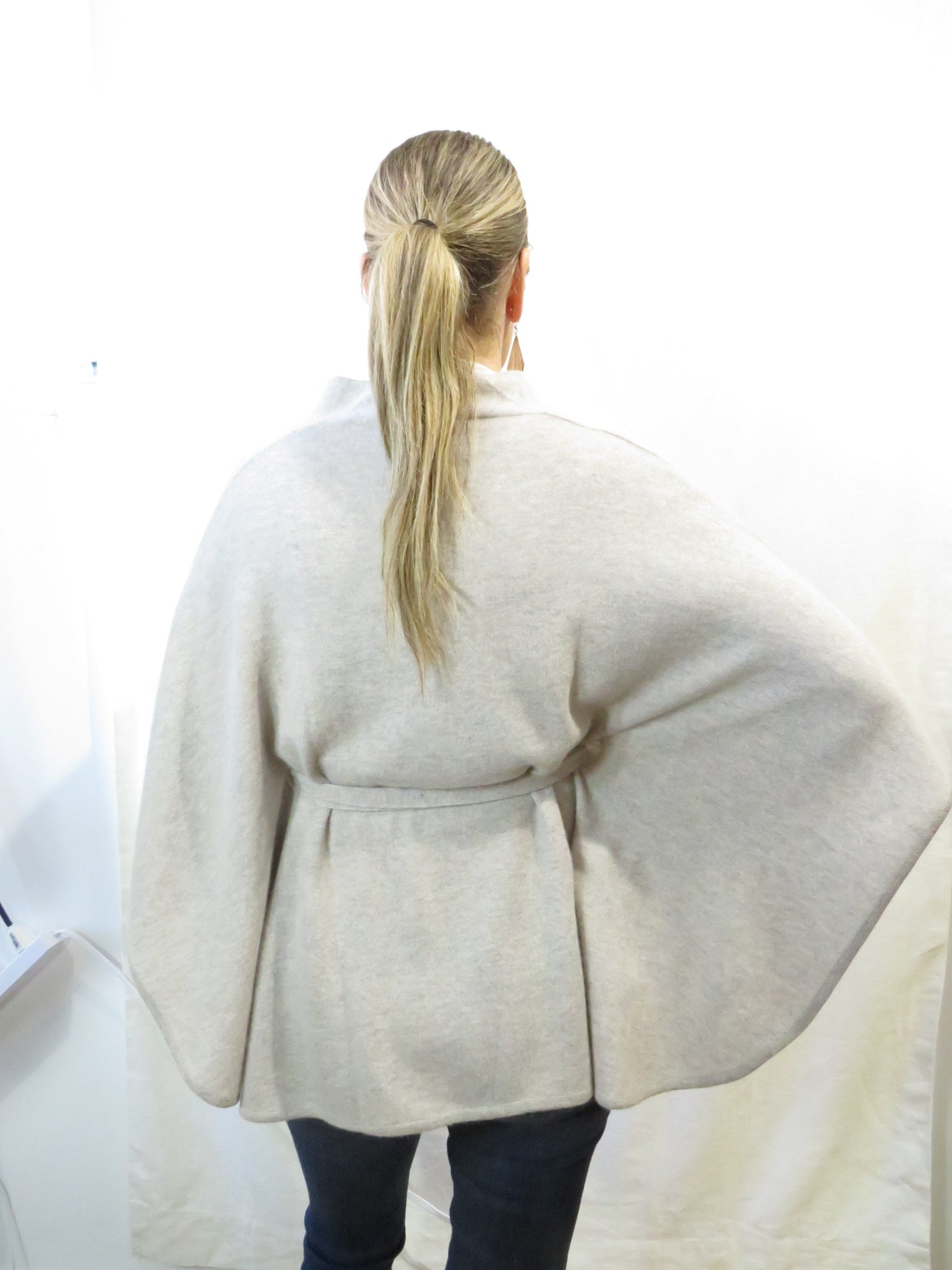 Pure Cashmere Belted Light Grey Poncho - Wrap