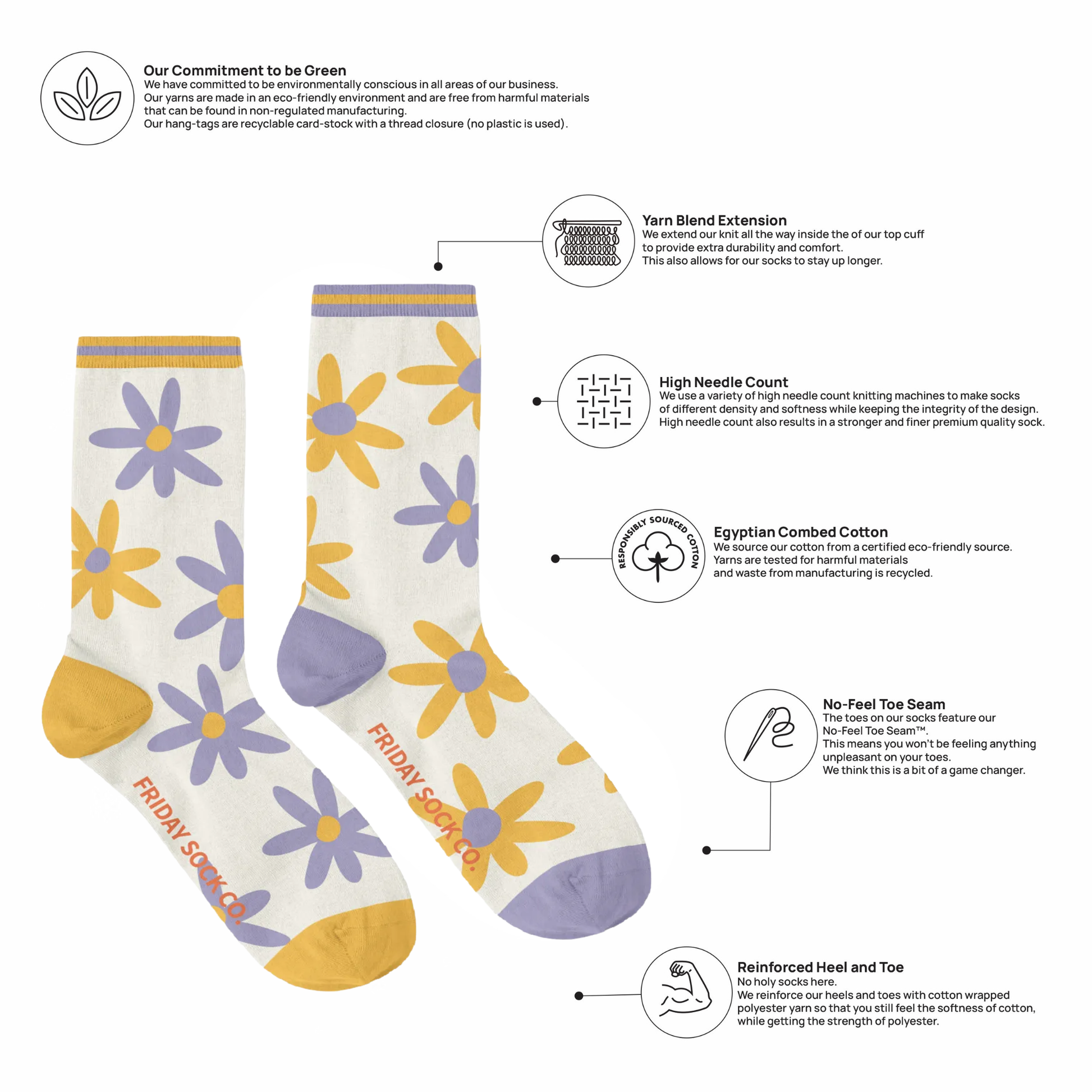 Women's Purple & Yellow Flower Socks: Women’s 5 – 10