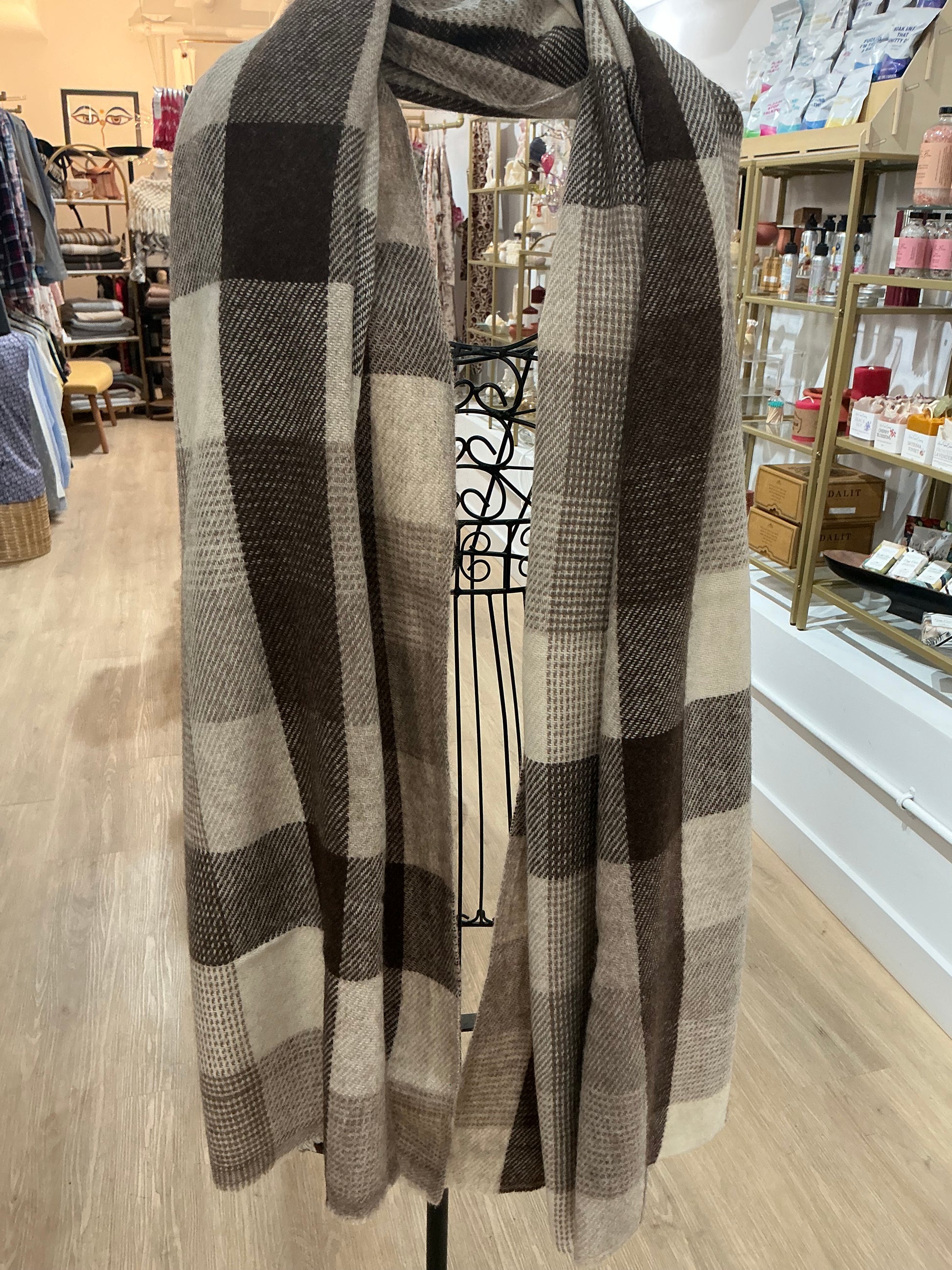 Yak Wool Scarf Large Brown Squares